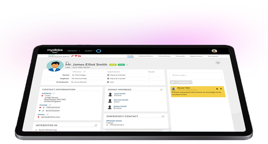 Easy to use, efficient and smart, MyClinics is the complete dental software system used by practices worldwide. Simplify management, automate marketing and grow your business! Our dental software is used in individual practices and by multi-site dental groups too.